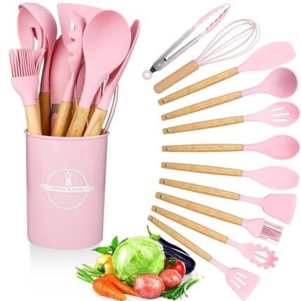 Set 12 Copë Aksesorë Kuzhine me Dorëza Druri