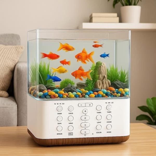 Kombinim perfekt mes akuariumit dekorativ dhe altoparlantit relaksues.