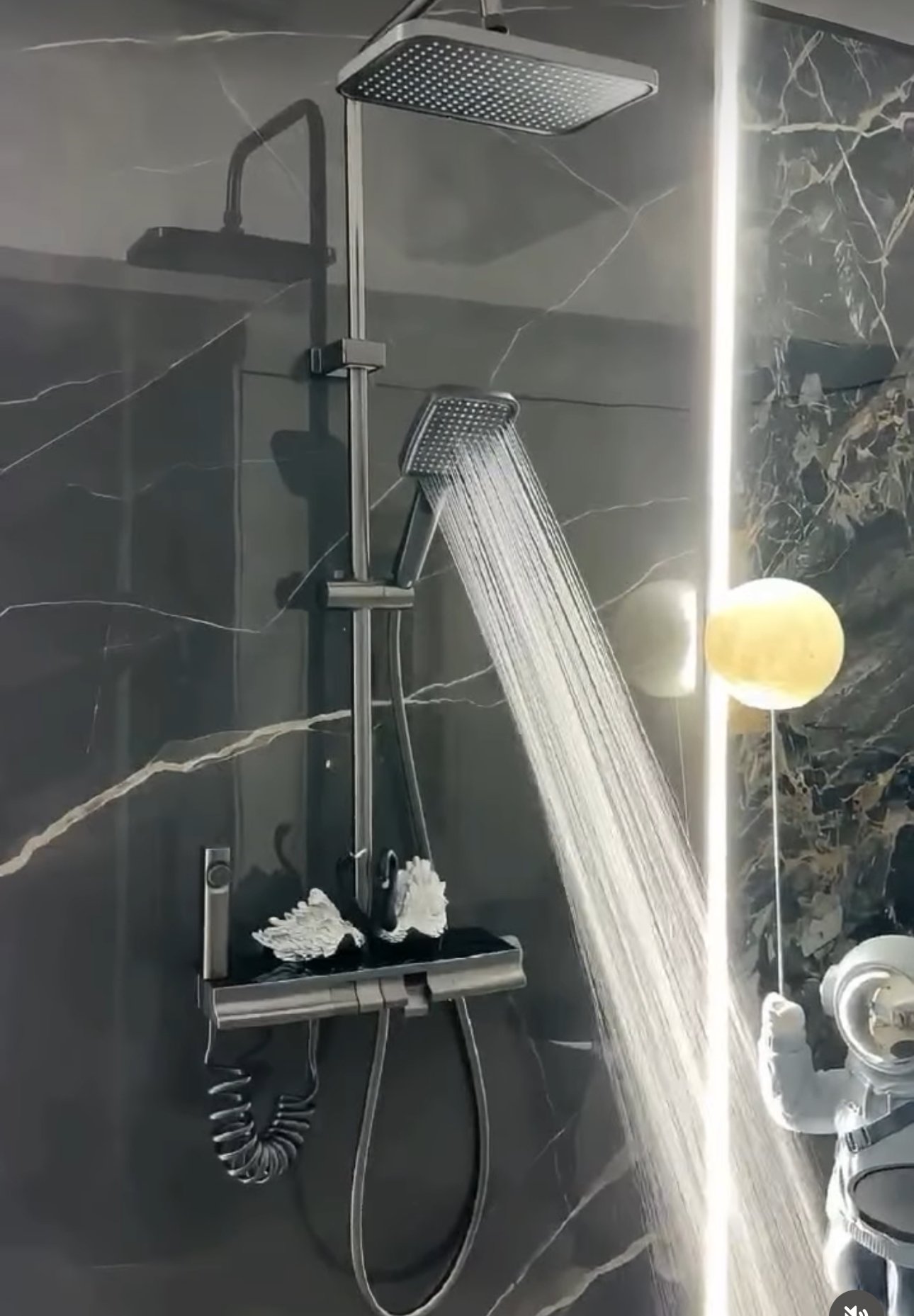 Bateri elegante dhe praktike për dush, me dizajn modern dhe cilësi të lartë. Përfshin kokën fikse të dushit, kokën dore dhe dalje uji poshtë për rehati maksimale. Sistemi lejon ndërrimin e lehtë të funksioneve sipas nevojës.