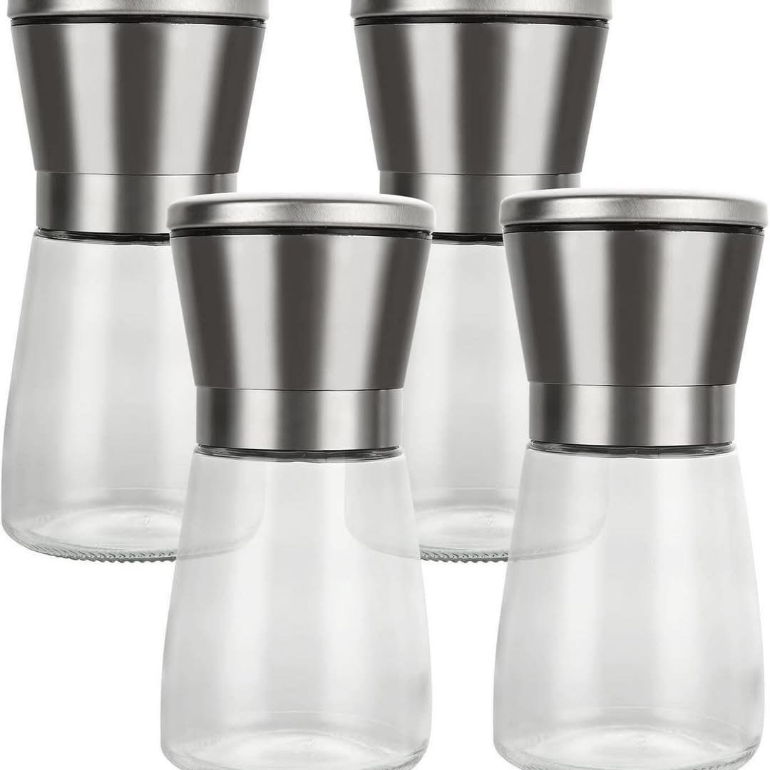 Mulli inox për erëza me trup qelqi dhe dizajn praktik.