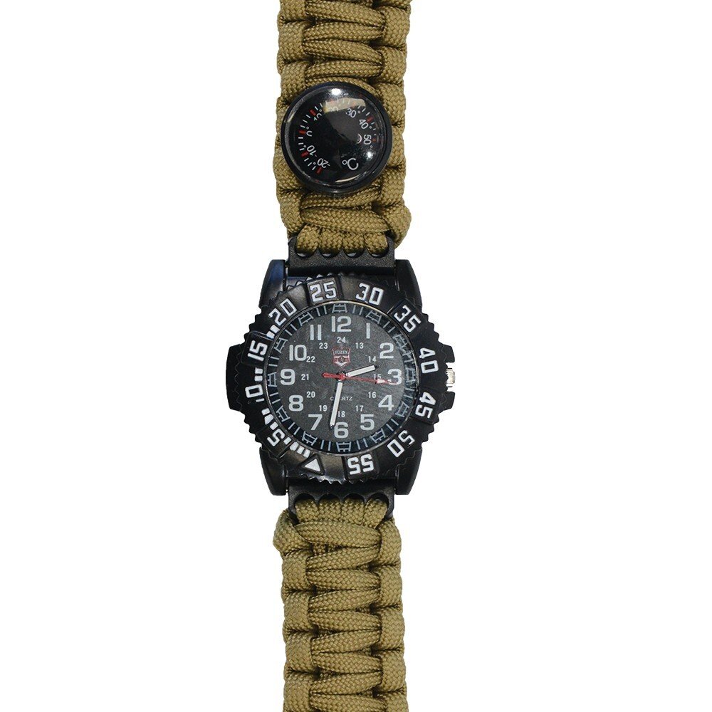 Byzylyk me busull, orë dhe vegla praktike, ideal për kamping dhe aventura.