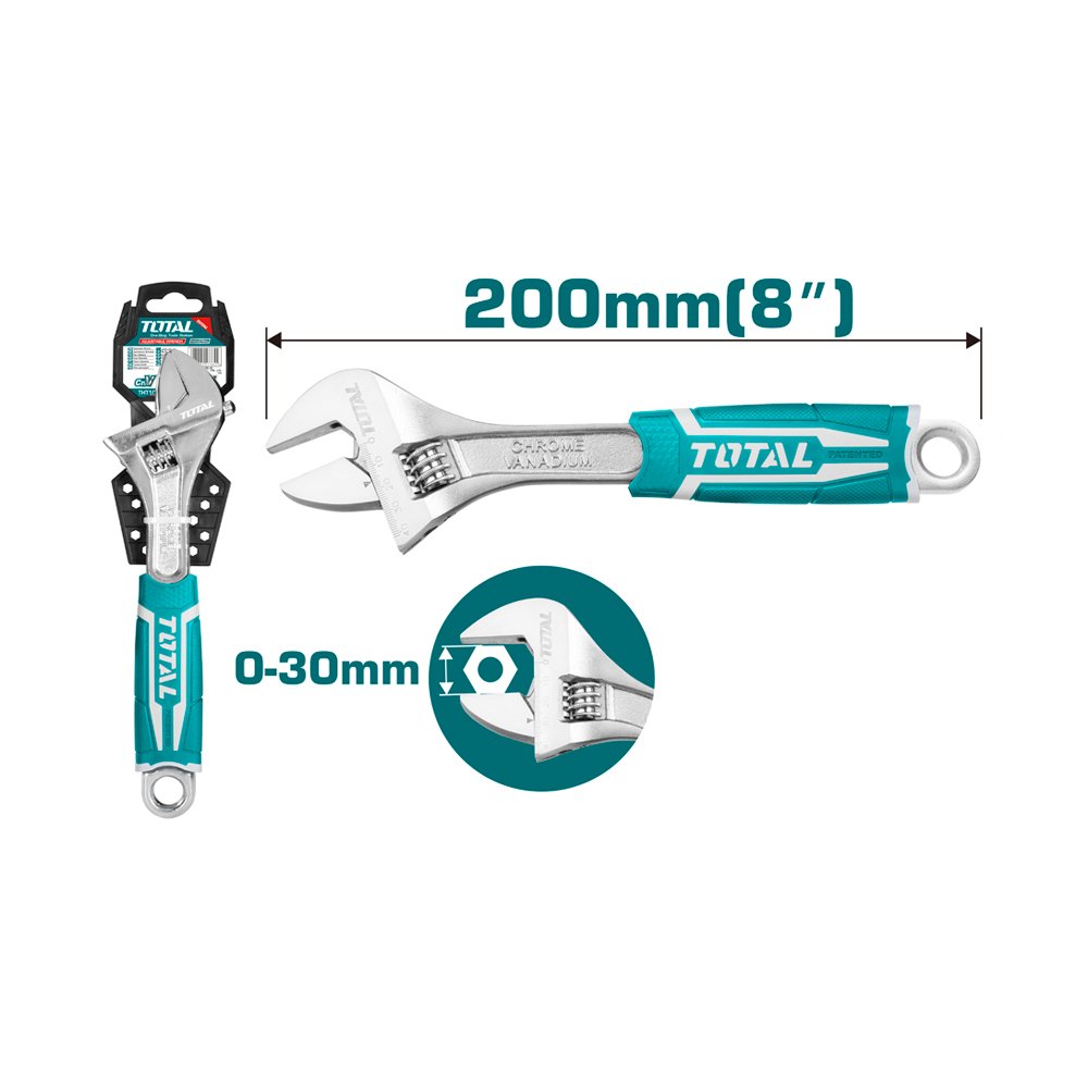 Model profesional TOTAL me gjatësi 200mm dhe hapje deri në 30mm, me dorezë të qëndrueshme dhe konstruksion industrial për përdorim të përditshëm teknik.