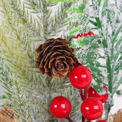 Një dekor i mrekullueshëm Krishtlindjesh me degë të gjelbra, manaferra të kuqe dhe kokrra pishe.