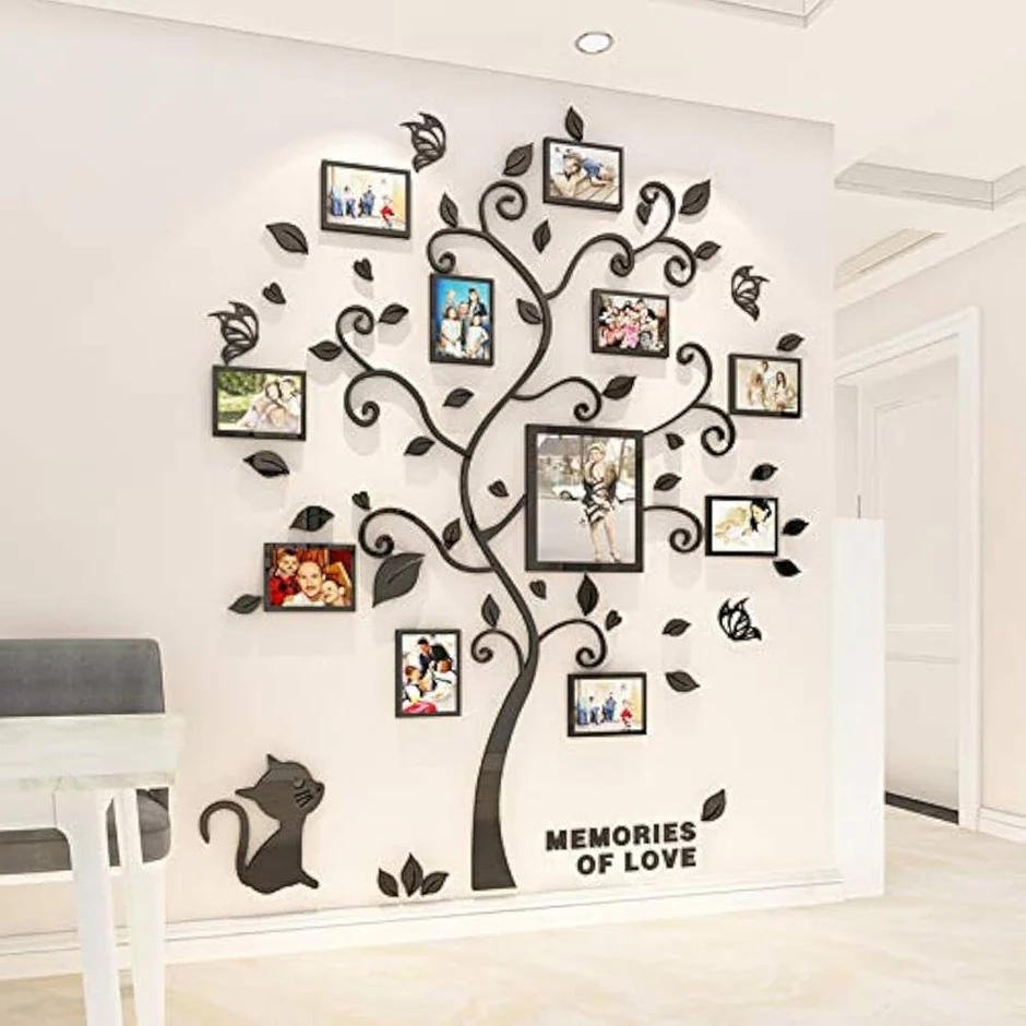 Dekor murali në formë peme me korniza për foto, perfekt për zbukurim shtëpie.