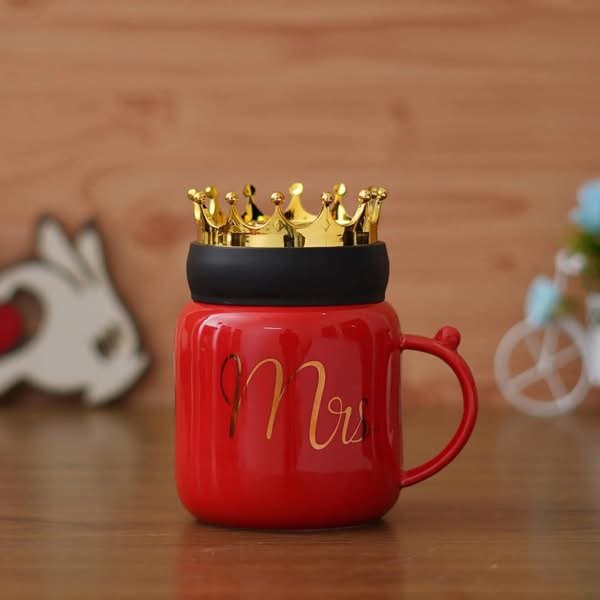 Një filxhan elegant dhe unik me mbishkrimin “Mrs&King” dhe kapak në formë kurore.
