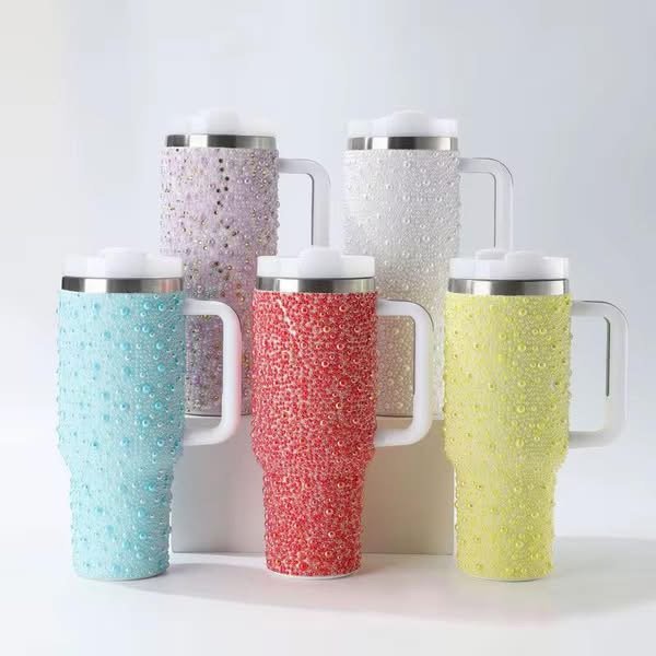 Gotë termike me dorezë dhe pipëz, e dekoruar me kristale shumëngjyrëshe që e bëjnë të dallueshme dhe luksoze. Ruani pijet tuaja të ngrohta ose të ftohta për orë të tëra.