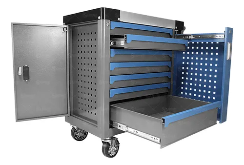 Karrocë metalike me sirtarë për organizimin e veglave në punëtori ose servis. E qëndrueshme dhe praktike për përdorim profesional.