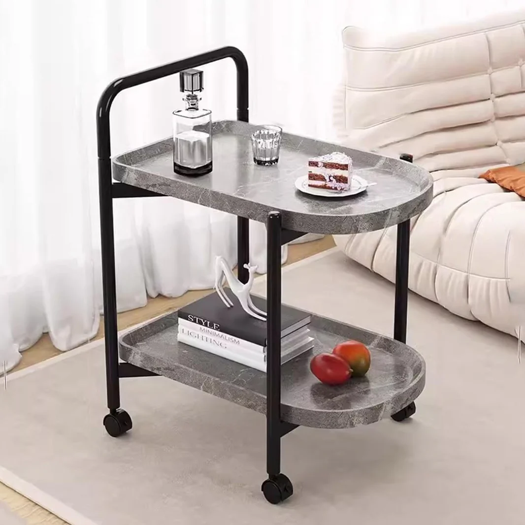 Karrocë servirjeje me stil mermeri dhe rrota të qëndrueshme.