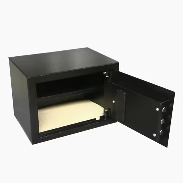 Kasafortë praktike për ruajtjen e parave, dokumenteve dhe sendeve me vlerë. E ndërtuar nga material metalik rezistent, me sistem sigurie të fortë, e përshtatshme për përdorim në shtëpi, zyrë apo dyqan. Mundësi mbylljeje me kyç për mbrojtje të shtuar.
