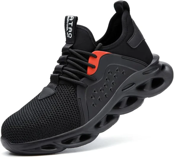 Dizajn modern sportiv me teknologji sigurie — majë çeliku, taban fleksibël dhe frymëmarrje e lartë.