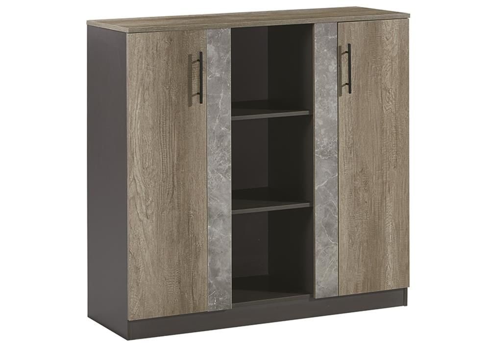 Komodinë druri me hapësira praktike dhe stil modern.