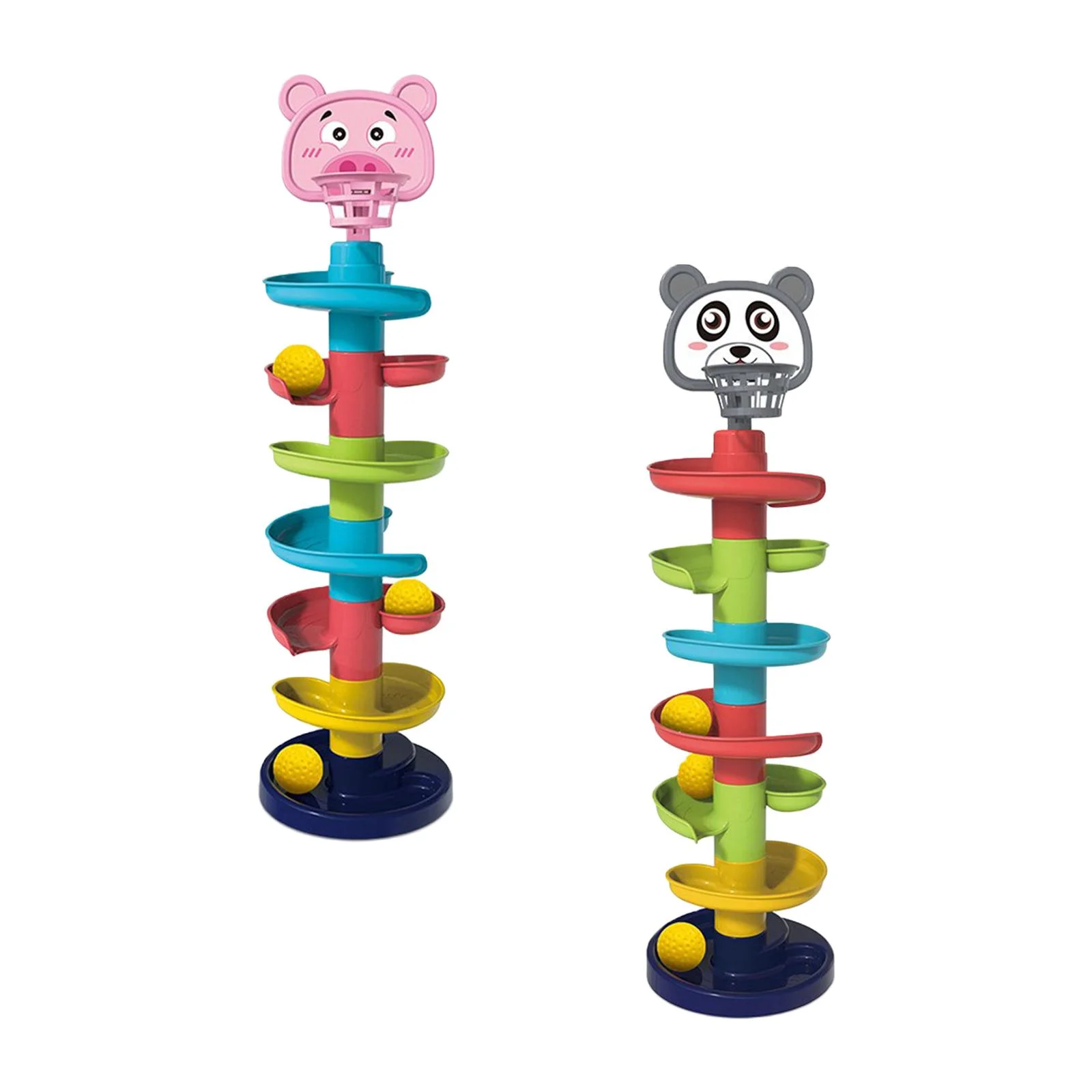 Lojë dinamike me spirale rrotulluese për lëshimin e topthave me ngjyra. Ndihmon në zhvillimin e koordinimit, përqendrimit dhe perceptimit vizual te fëmijët. E ndërtuar me ngjyra të ndezura dhe figura të dashura si panda dhe ari, kjo lojë është argëtuese dhe edukative në të njëjtën kohë.