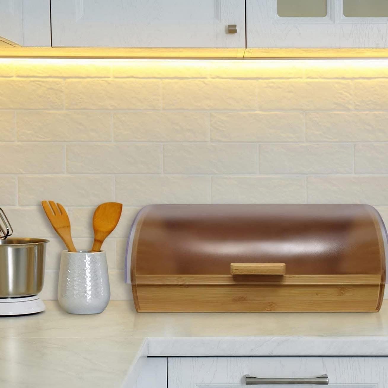 Kuti buke prej bambuje me kapak transparent, funksionale dhe dekorative për çdo kuzhinë