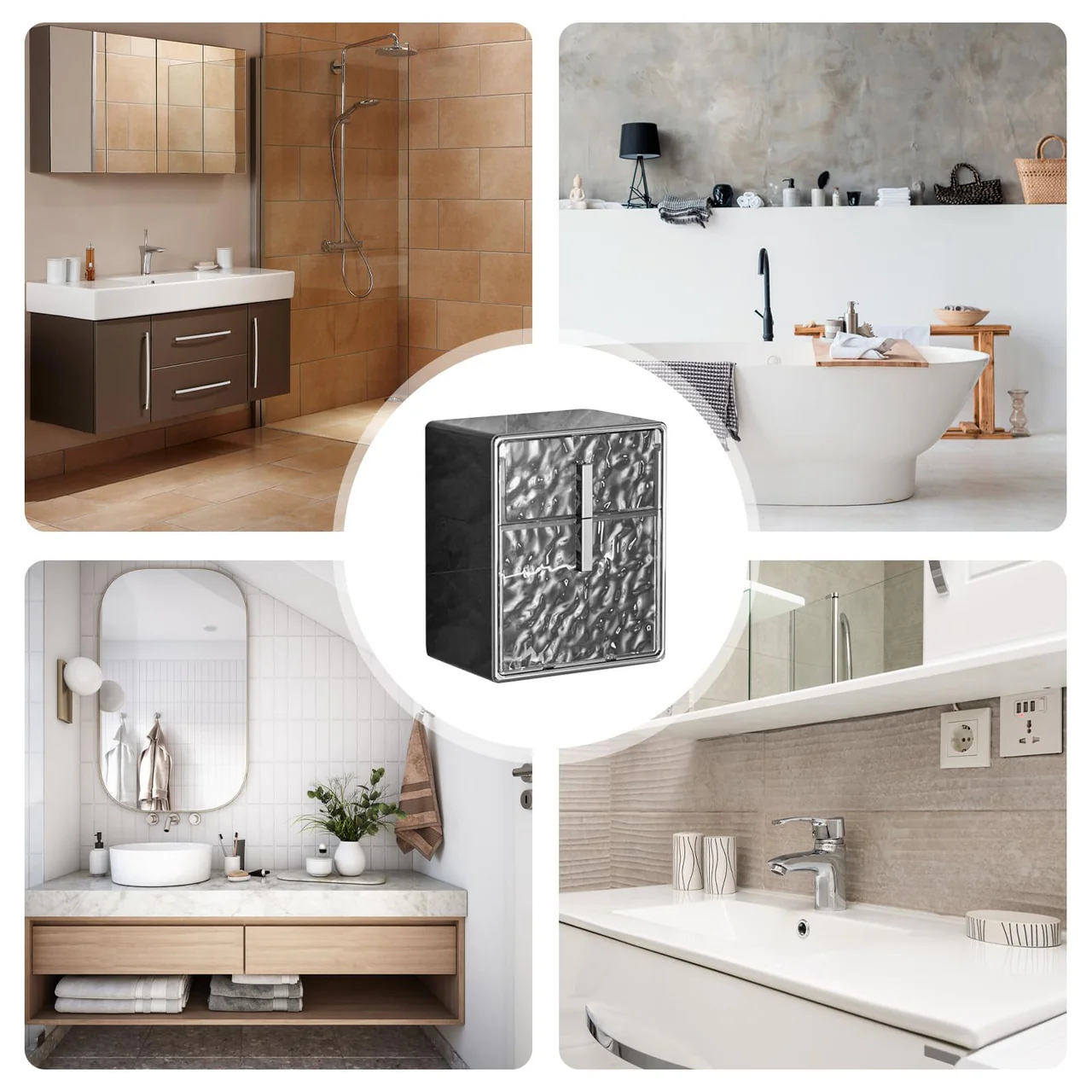 Sill elegancë në banjon tënde me këtë kuti higjienike me pamje metalike luksoze.