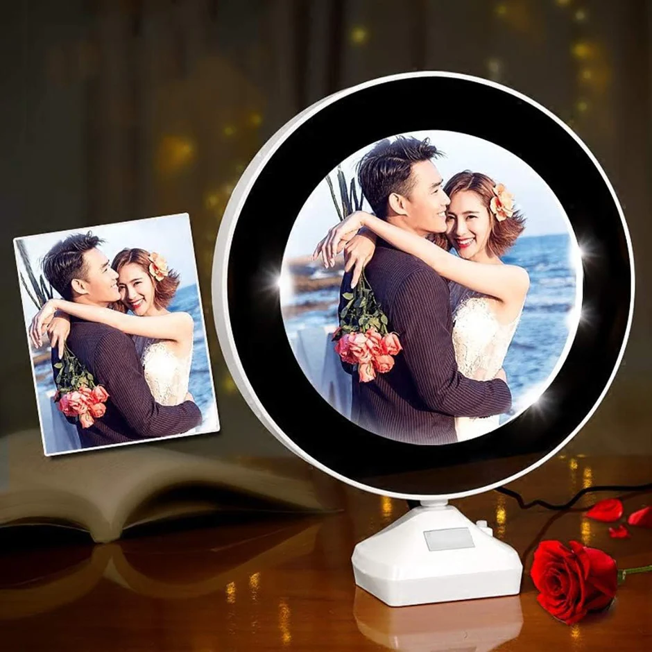 Lampë LED rrethore me foto të personalizuar për dhuratë ose dekor.