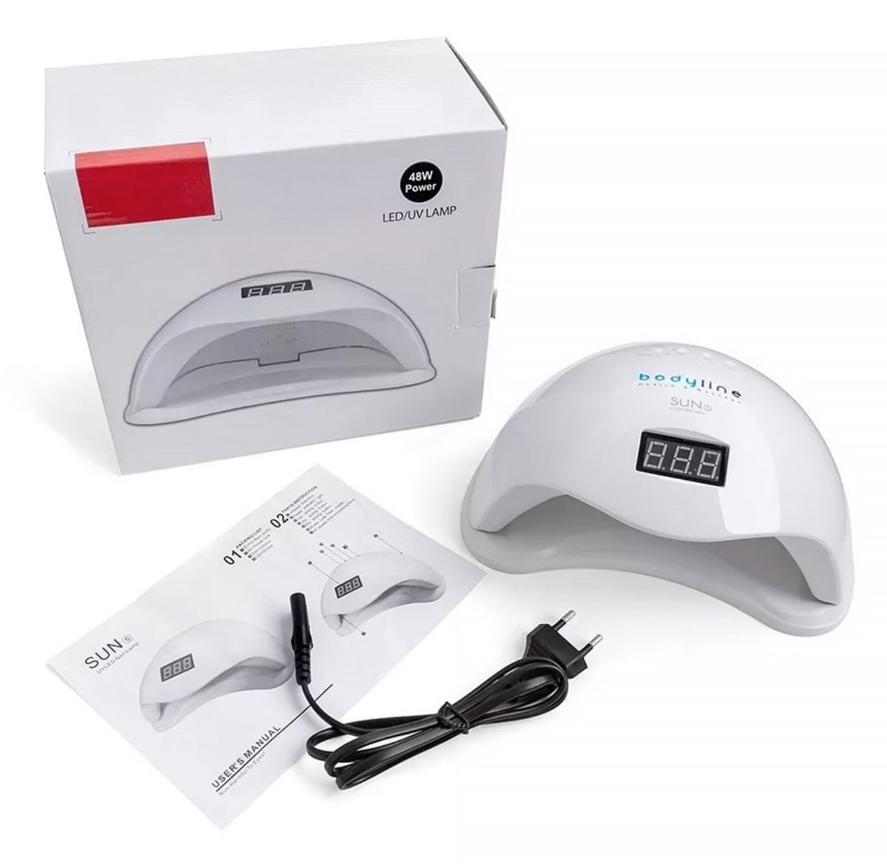 Llampë profesionale për tharjen e xhelit dhe manikyrit, me fuqi 48W dhe ekran digjital për kontroll të kohës. Pajisja kombinon dritat LED dhe UV për tharje të shpejtë dhe uniforme, pa dëmtuar thonjtë. Përshtatshme për përdorim në shtëpi ose sallon bukurie. Paketimi përfshin kabllon e rrymës dhe udhëzuesin e përdorimit.