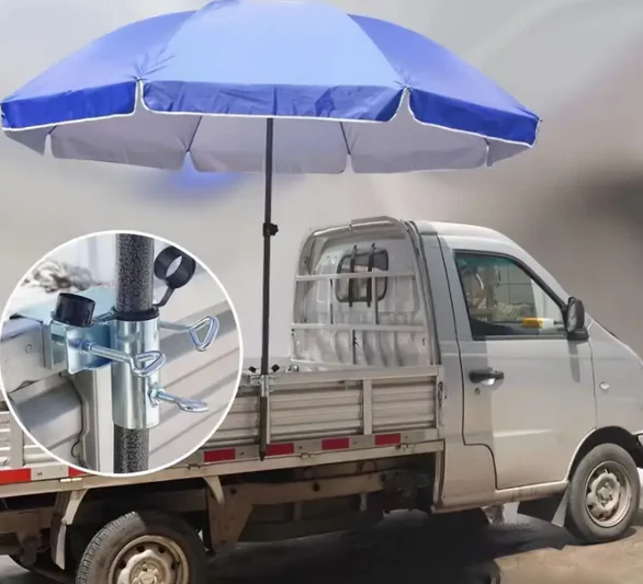 Mbajtëse metalike për çadra pune, ideale për automjete ose hapësira të jashtme.