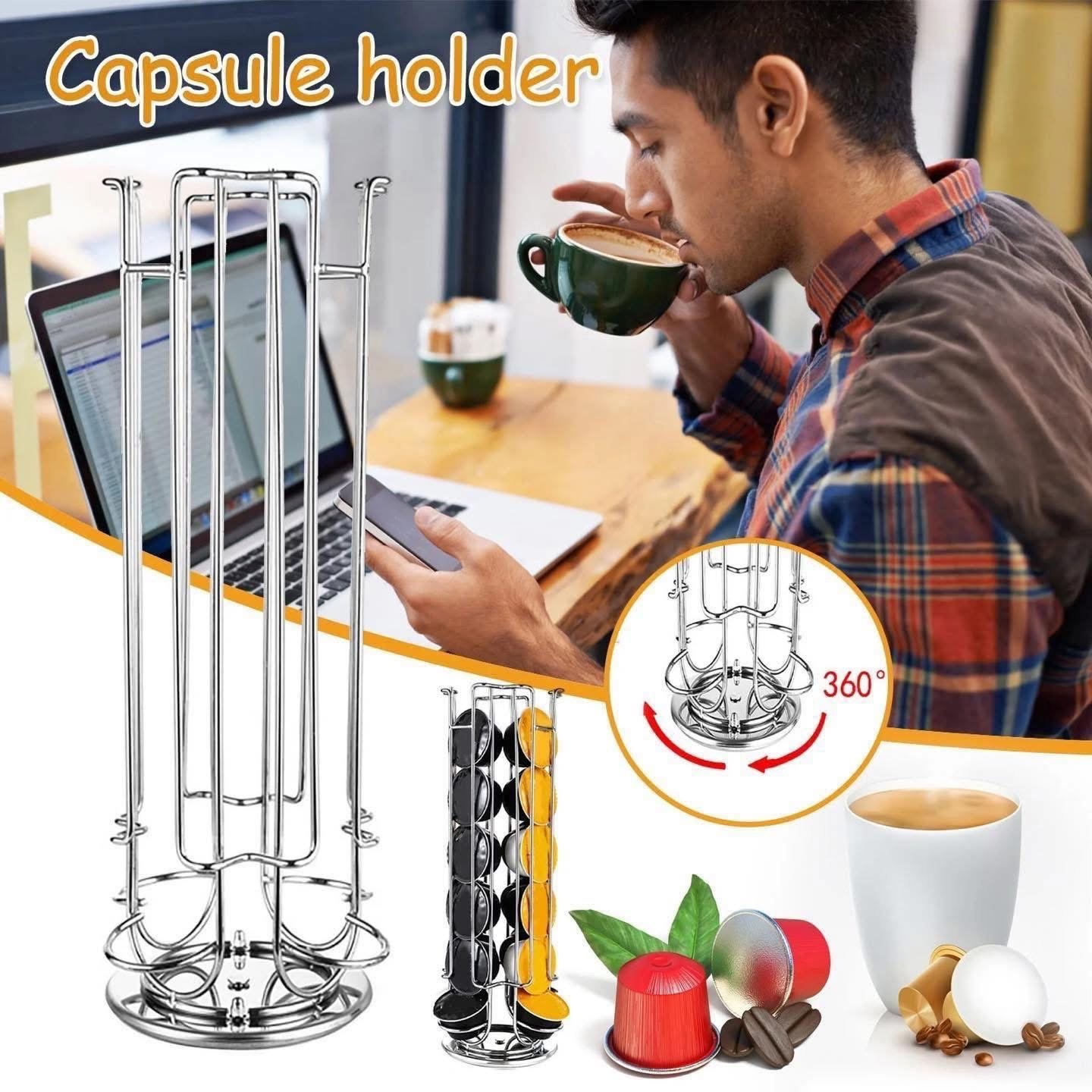 Organizoni kapsulat e kafesë me stil dhe lehtësi me këtë mbajtëse rrotulluese praktike.