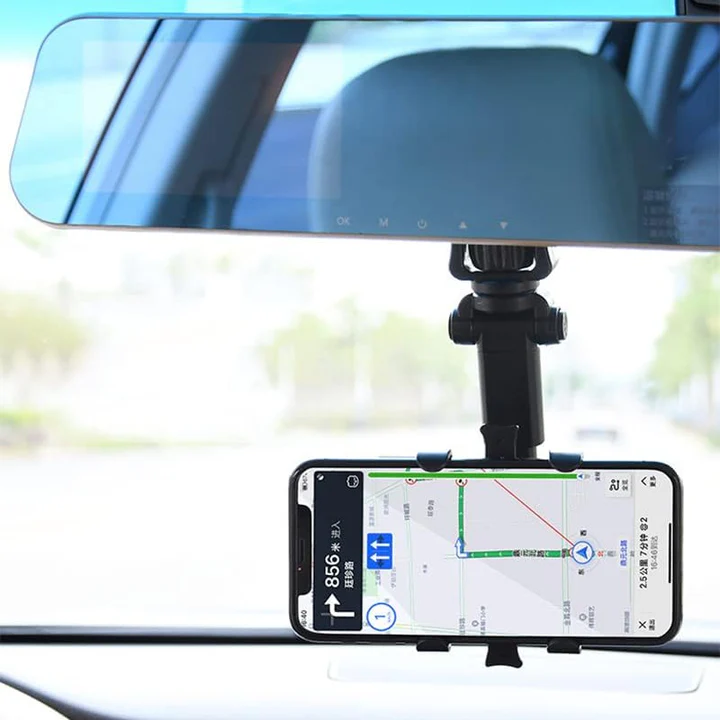 Mbajtëse telefoni universale për pasqyrë veture me kënd të rregullueshëm.