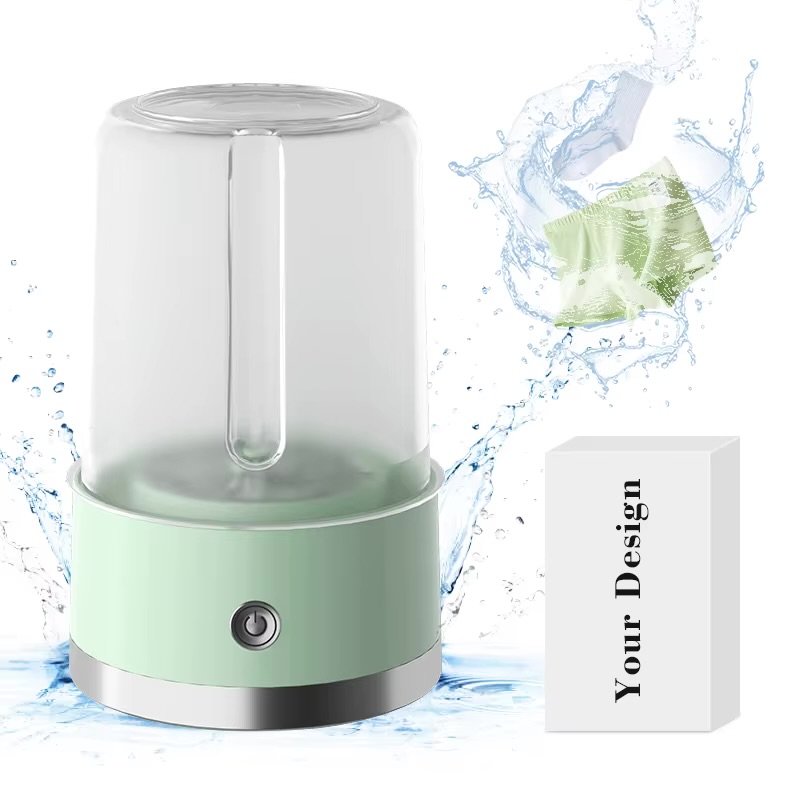 Lavatrice e vogël USB për rroba të vogla, ideale për udhëtime dhe përdorim shtëpiak.