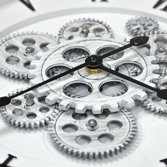 Shto një prekje moderne dhe industriale në ambientin tuaj me këtë orë murale dekorative me ingranazhe.