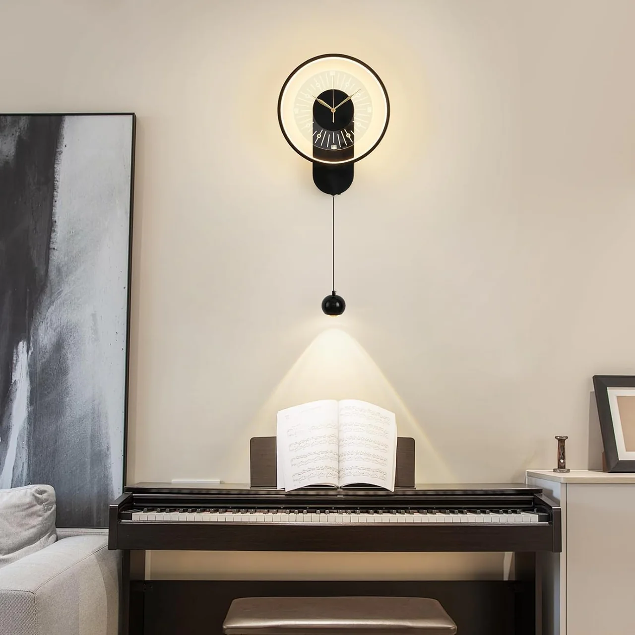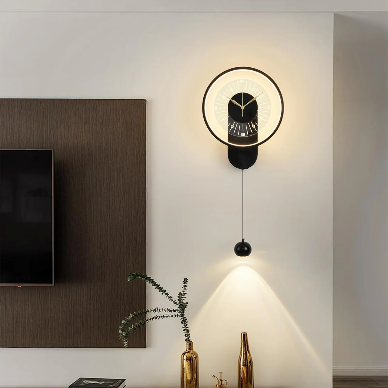 Orë murale LED moderne me dekor varës.