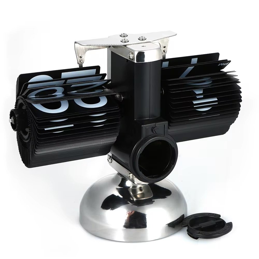 Orë unike me dizajn vintage-industrial, e cila tregon kohën përmes mekanizmit të fletëve që kthehen automatikisht çdo minutë. Kombinon stil klasik me precizion modern, perfekte për tavolinë zyre, shtëpi apo ambient dekorativ.