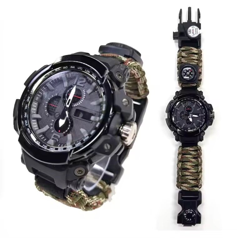Orë praktike me stil ushtarak, e pajisur me busollë funksionale për udhëtime në natyrë apo situata emergjente. Me ndërtim të fortë dhe rezistencë ndaj goditjeve, kjo orë është e përkryer për përdorim të jashtëm. Rripi është i rehatshëm dhe i qëndrueshëm për mbajtje të gjatë. Kombinon funksionalitetin me dizajnin modern dhe taktik.