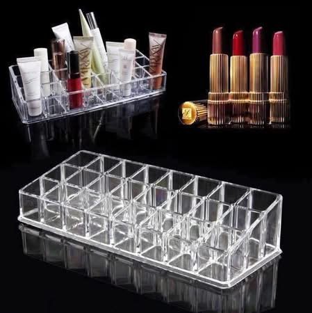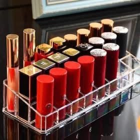 Organizer transparent për ruj dhe produkte të vogla kozmetike, elegant dhe funksional.