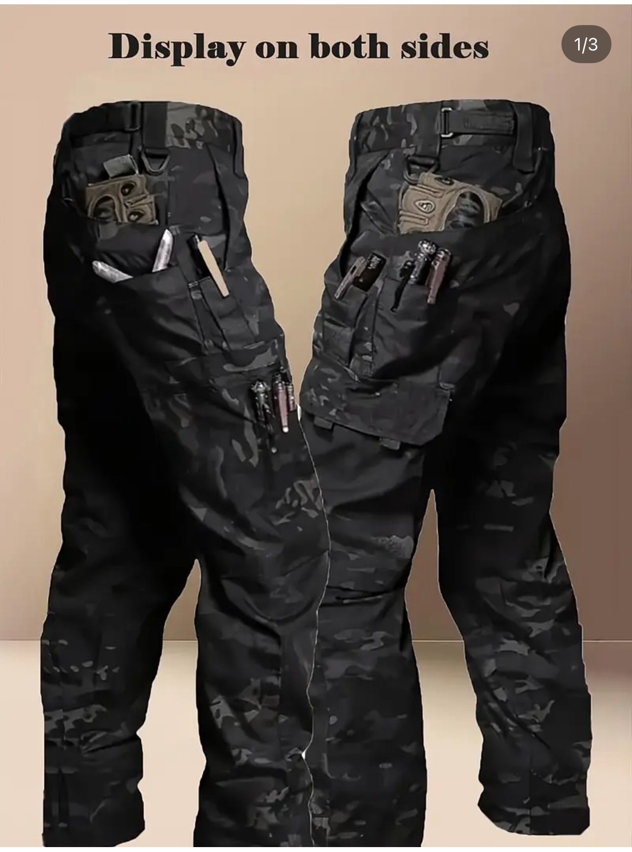 Pantallona taktike shumëfunksionale me xhepa të shumtë dhe dizajn ushtarak.