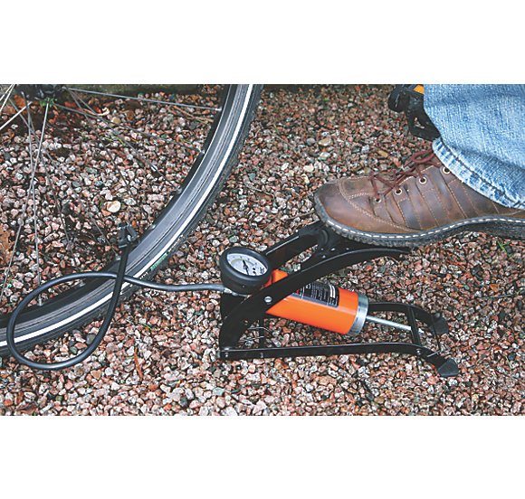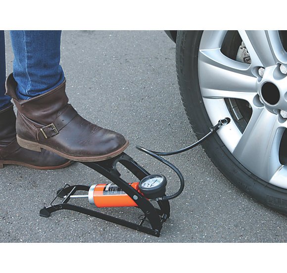 Pompë praktike me matës presioni për fryrjen e gomave dhe topave.