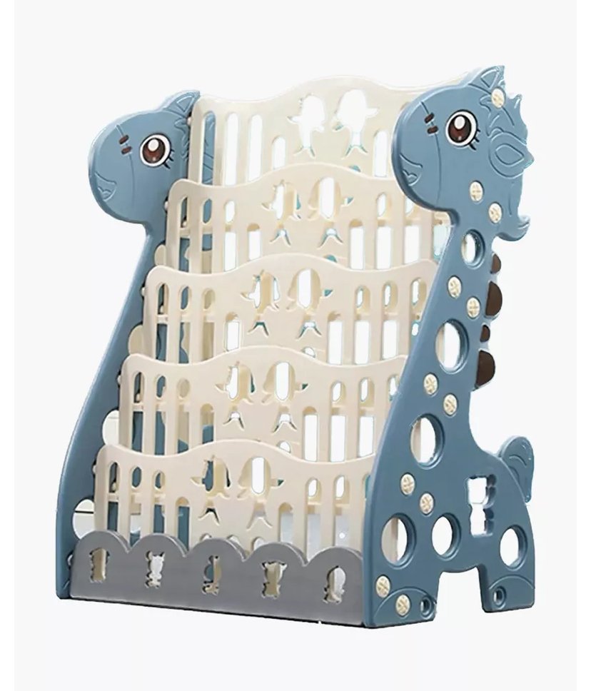 Raft modern dhe i qëndrueshëm për organizimin e librave të fëmijëve. Përmasa të mëdha për kapacitet të lartë: 72 cm lartësi, 61 cm gjerësi dhe 36 cm thellësi. Struktura e përforcuar me dizajn atraktiv në ngjyrë blu, me formë argëtuese që e bën ideal për çdo dhomë fëmijësh. Ofron shumë ndarje për libra të madhësive të ndryshme dhe stabilitet maksimal.