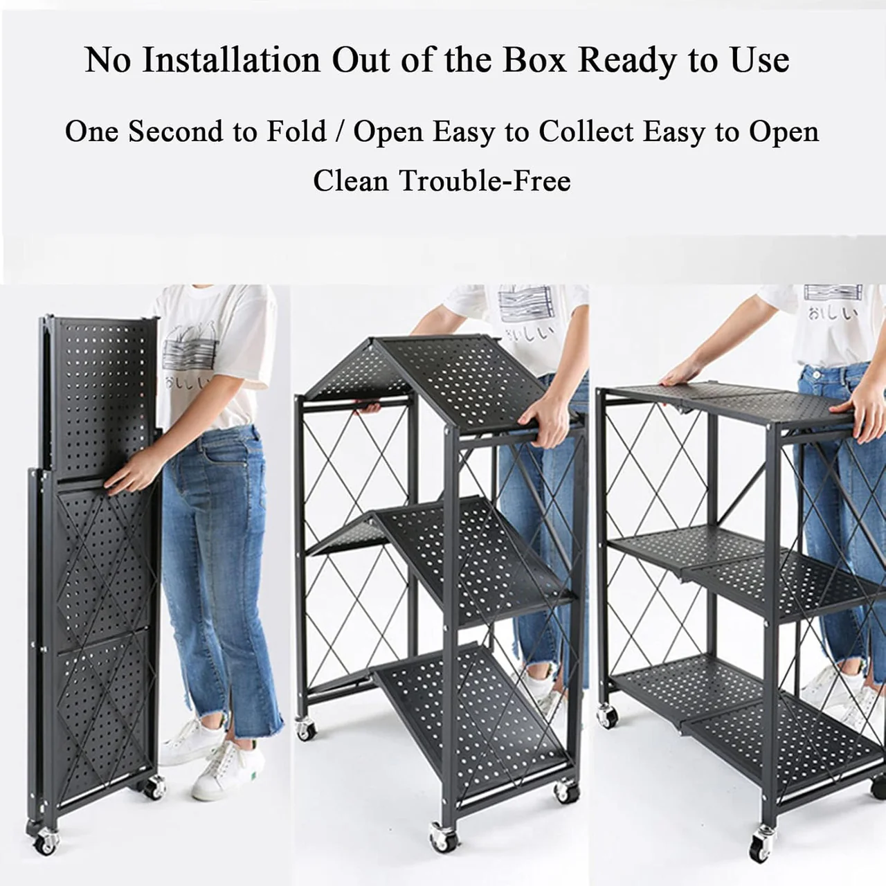 Raft i fortë metalik që paloset për kursim hapësire.
