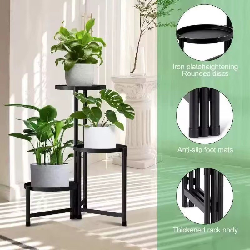 Raft elegant për vendosjen e luleve dhe bimëve dekorative, i përshtatshëm për ambiente të brendshme dhe të jashtme. Ndërtim i fortë prej metali të trashur me bazë kundër rrëshqitjes, që ofron stabilitet dhe jetëgjatësi. Dizajni me 3 nivele ju lejon të vendosni disa vazo në hapësirë të vogël, duke krijuar pamje estetike dhe moderne.