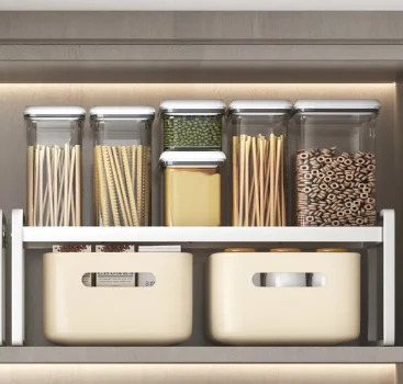 Raft praktik metalik për organizim kuzhine, i përshtatshëm për t’u vendosur mbi mikrovalë.