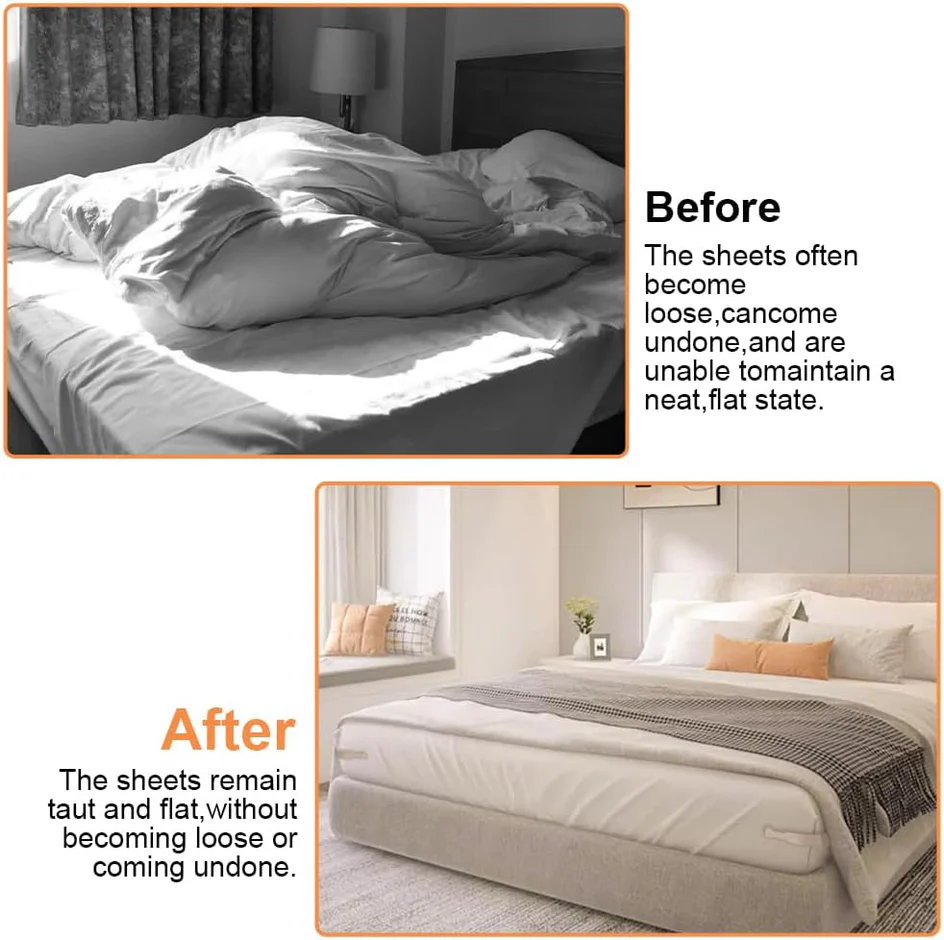 Set me 4 mbajtëse elastike për fiksonje perfekte të çarçafëve në shtrat.