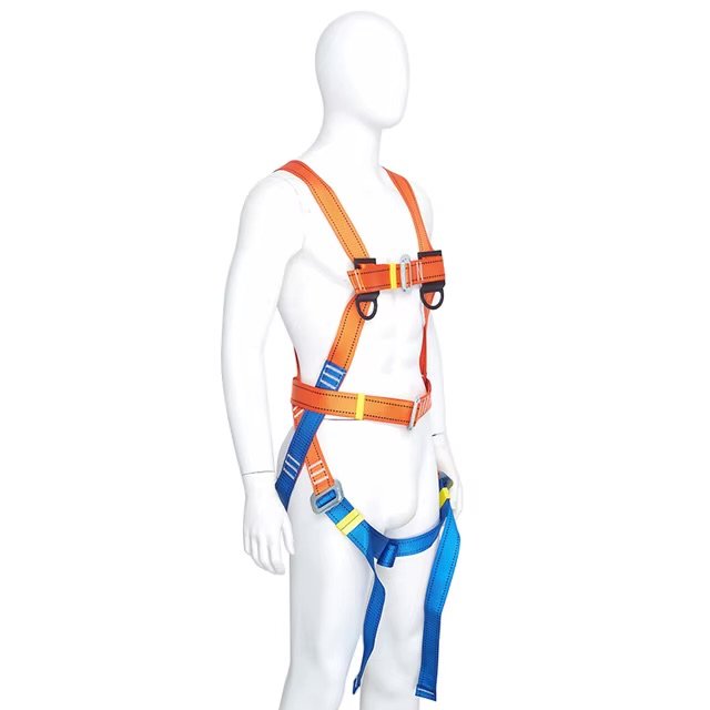 Set sigurie për punë në lartësi me rripa të qëndrueshëm dhe kapëse metalike. Ofron stabilitet dhe mbrojtje maksimale.
