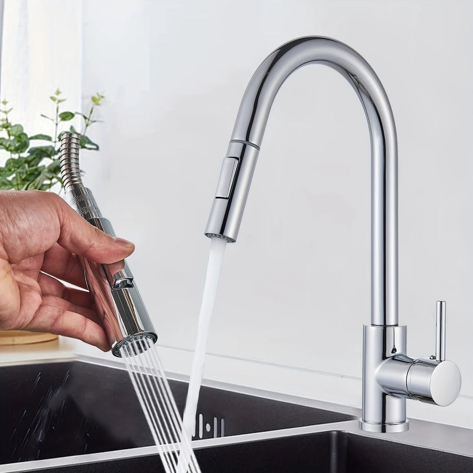 Rubinet kuzhine me grykë të zgjatshme dhe dy mënyra spërkatjeje për komoditet maksimal.
