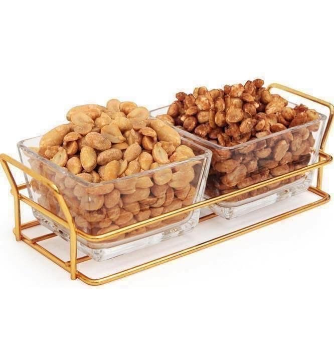 Set prej 2 enësh qelqi me mbajtëse metalike dekorative për servirje elegante dhe praktike
