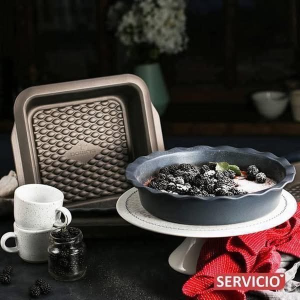 Seti përfshin 2 tepsi: një katrore dhe një rrumbullake.