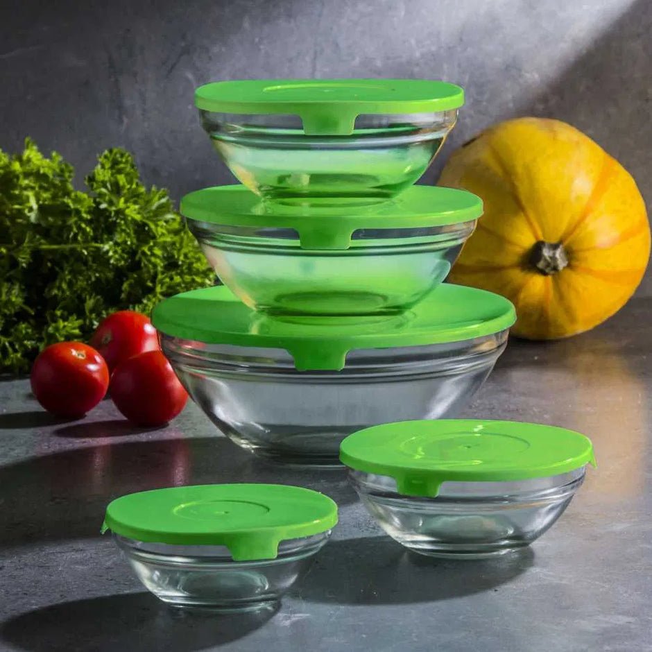 Set 5 Enë Qelqi me Kapak Silikoni
