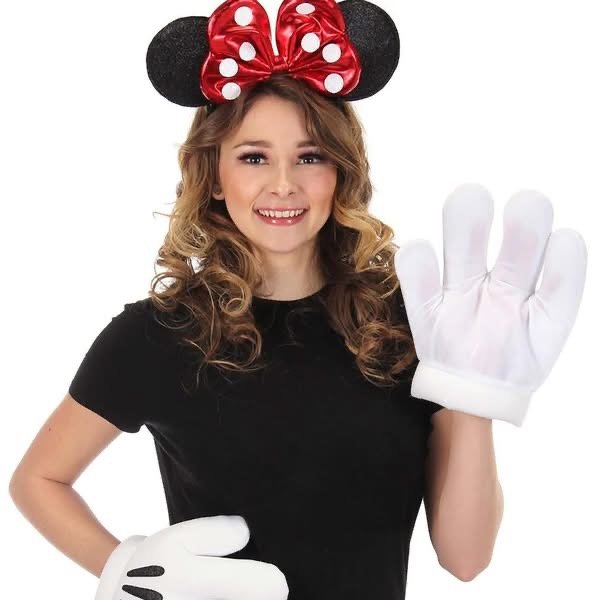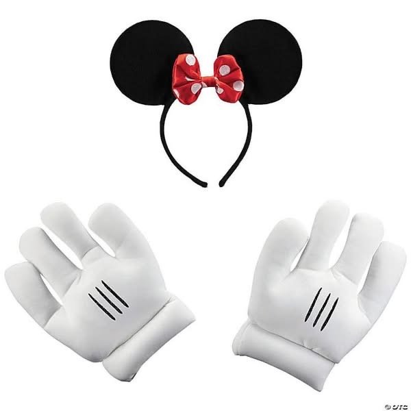 Set aksesorësh Mickey & Minnie me doreza dhe shirit flokësh për evente festive.