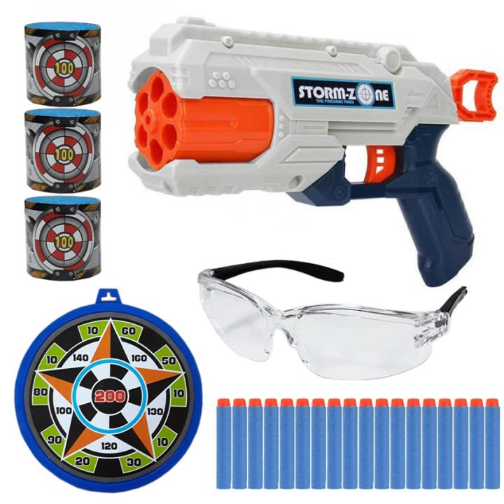 Set argëtues me pistoletë lodër, mburojë mbrojtëse dhe predha prej shkumë për lojë aktive, të sigurt dhe kreative. Ideale për lojëra taktike mes fëmijëve që zhvillojnë aftësitë motorike, saktësinë dhe bashkëpunimin në grup.