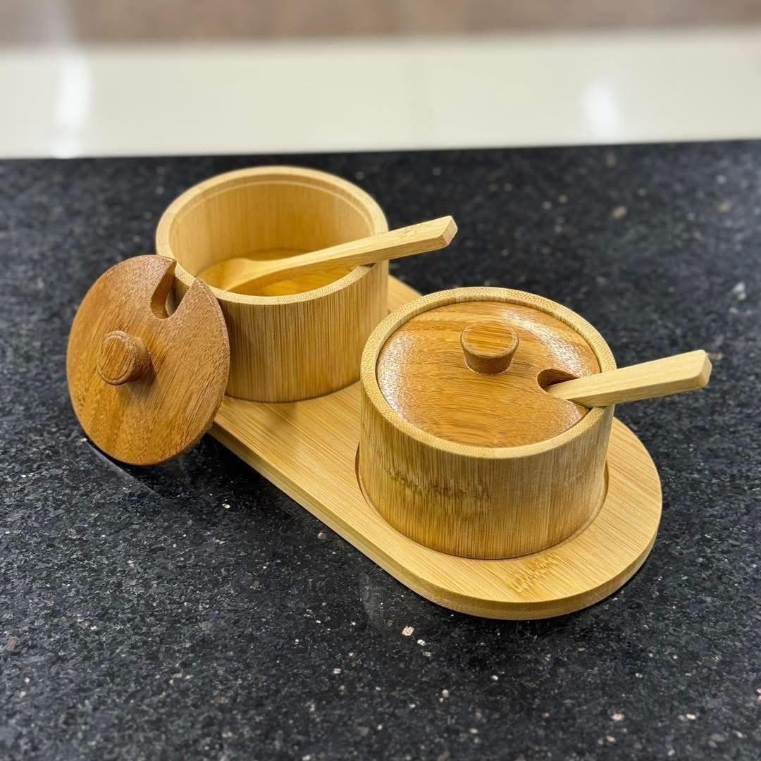 Set Bambuje për Kripë dhe Erëza me 2 Enë dhe Lugë || Çmimi: 12.00€
