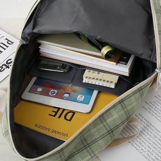 Set Çantash Shkolle 6 copë – Gri me Kuadrate