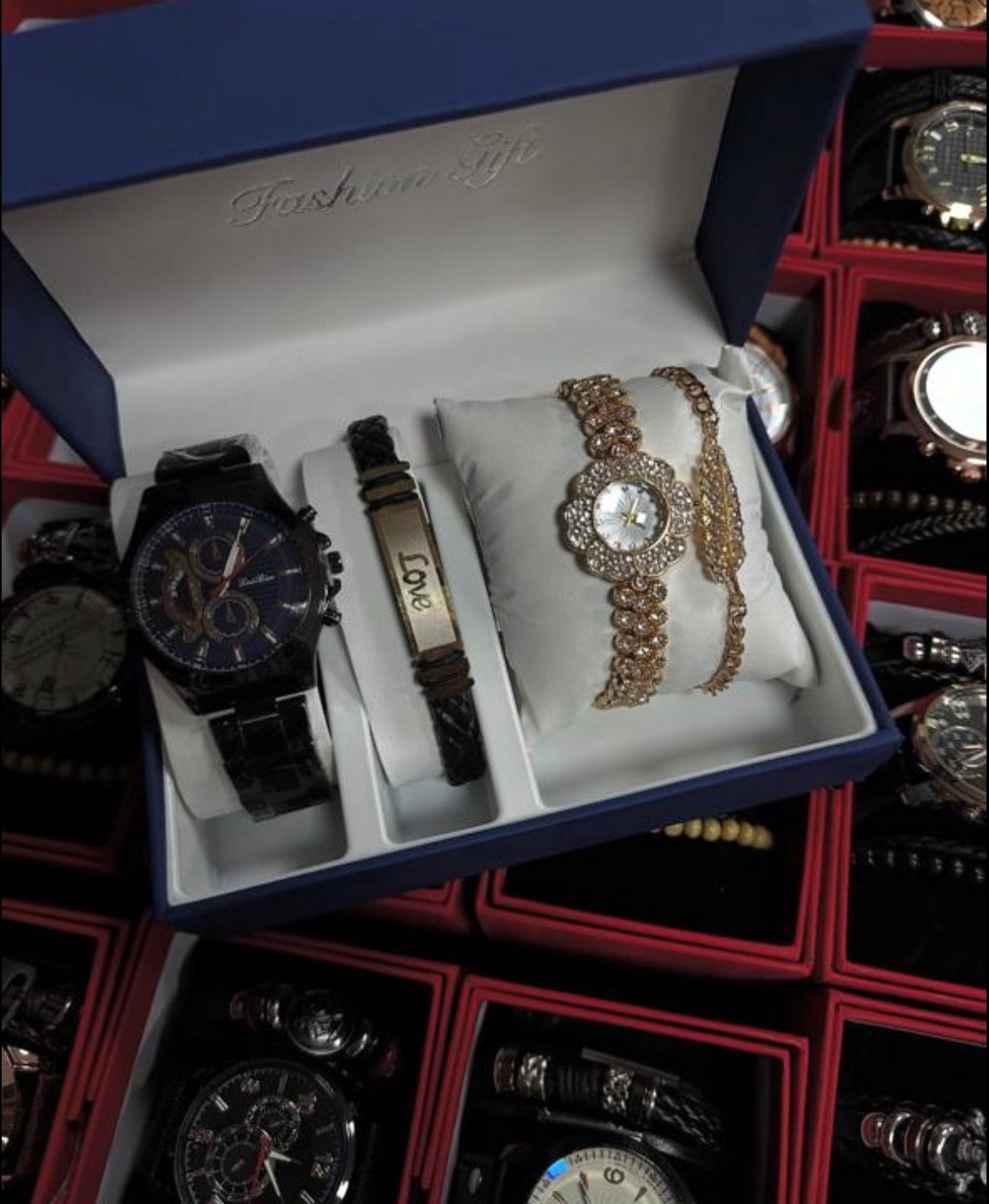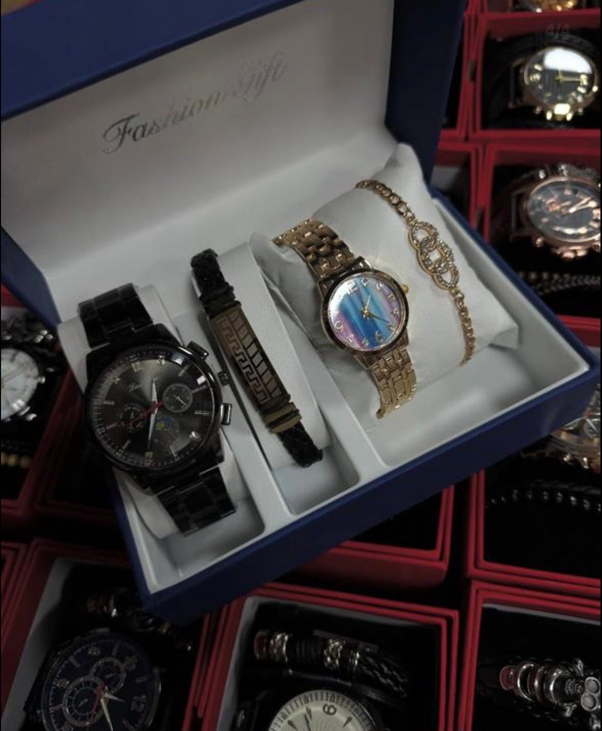 Set elegant për çift, dizajn modern dhe aksesorë të kombinuar për dhuratë perfekte.