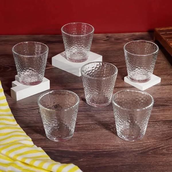 Set elegant me 6 gota qelqi të punuara me dizajn modern me reliev.