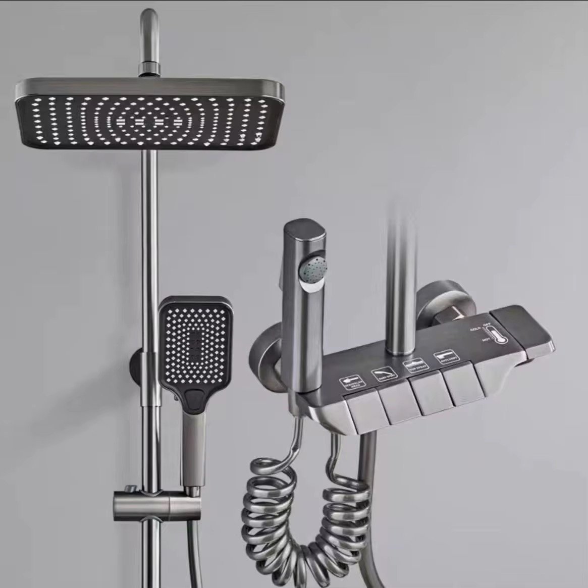 Zgjidhje ideale për një përvojë të rehatshme dushi. Përfshin kokë dushi cilësore, tub fleksibël për lëvizshmëri të lehtë dhe strukturë rrëshqitëse për rregullim të lartësisë. Dizajn modern dhe montim i lehtë – përshtatet në çdo banjo.
