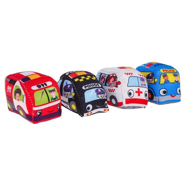 Përfshin makina të buta kartoni dhe tapet me rrugë e ndërtesa për lojë kreative.
