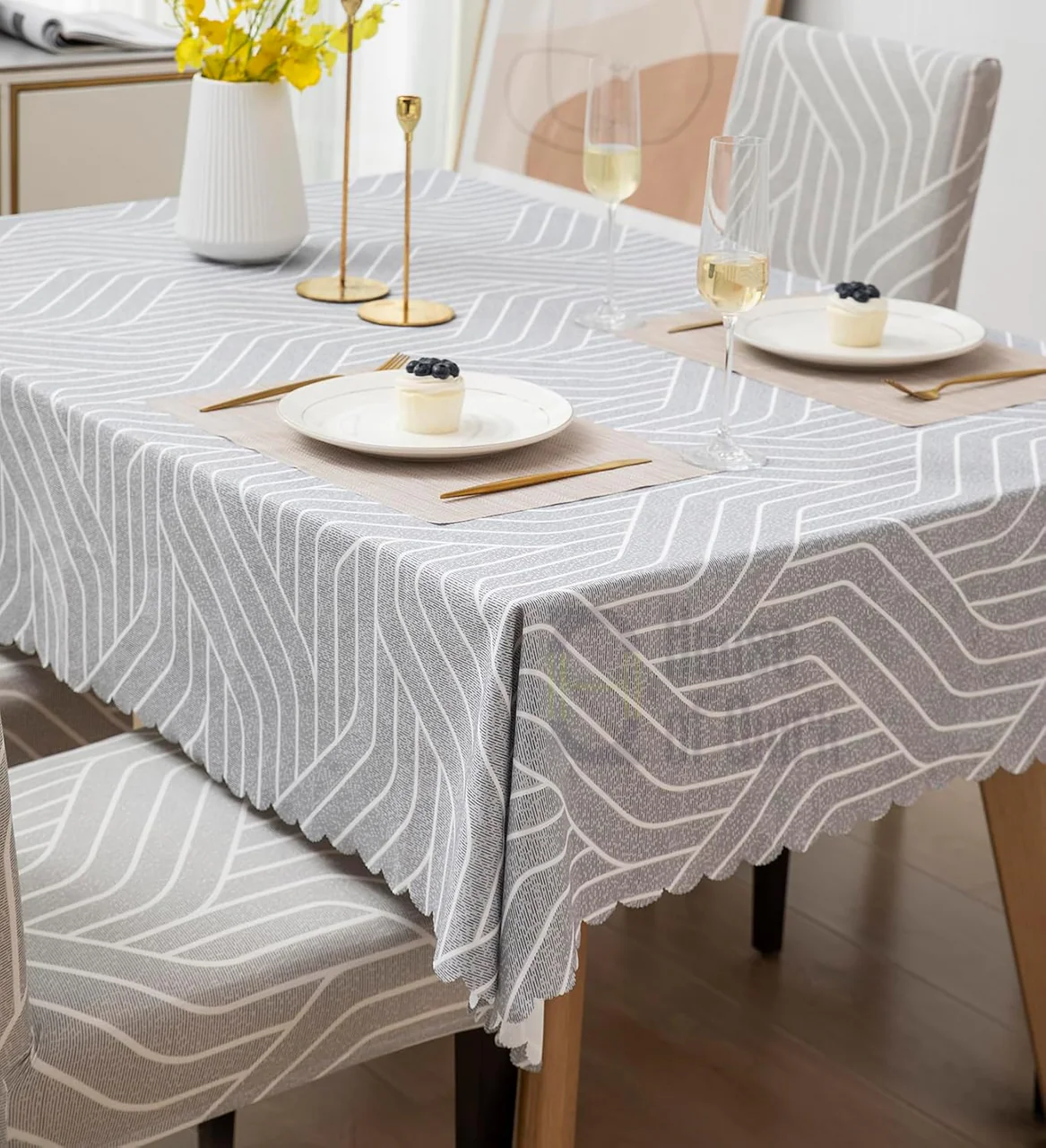 Set modern mbulesash për tavolinë dhe karrige me dizajn elegant gjeometrik.